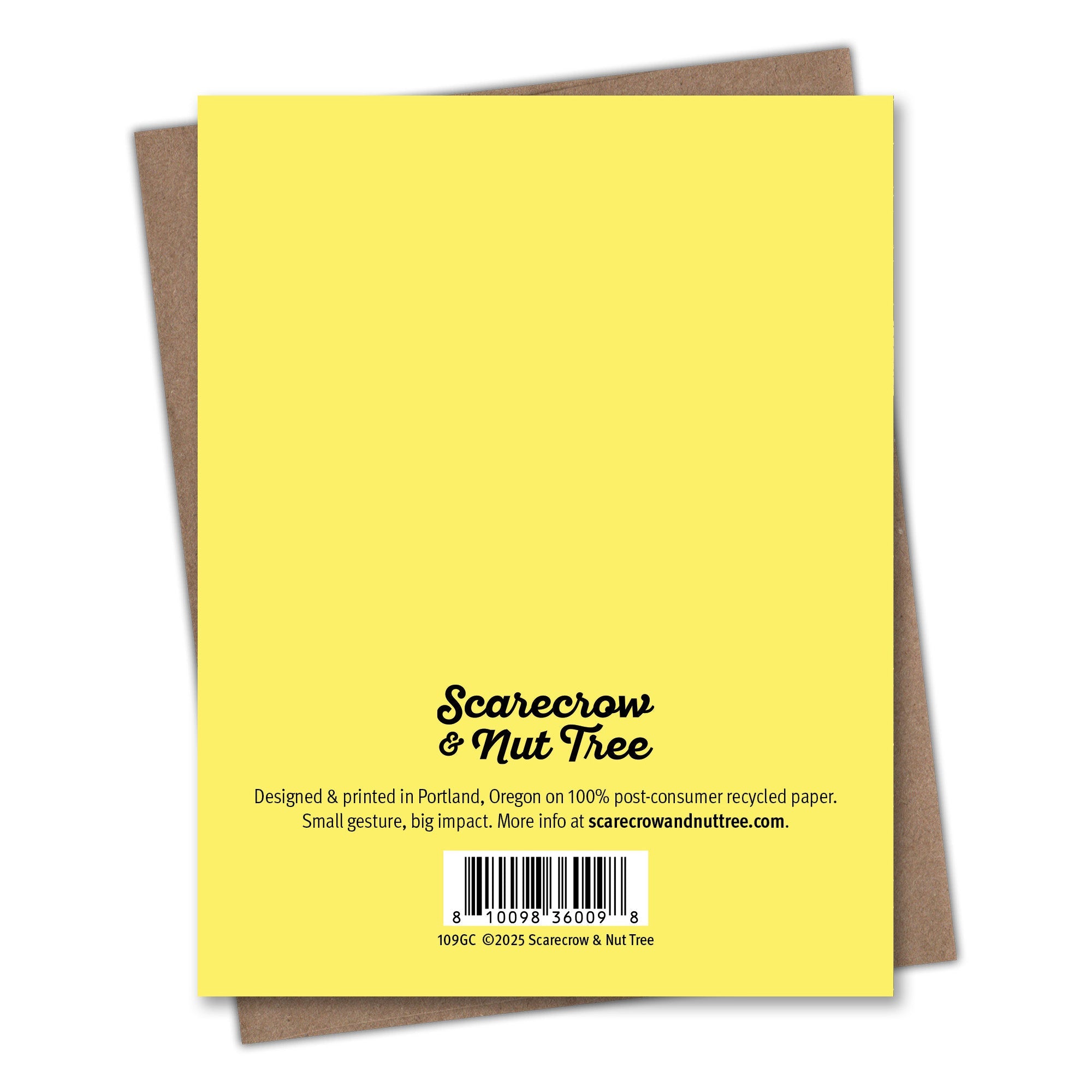 This Birthday card is printed on 100% recycled paper because we love trees as much as we love helping you connect. All Scarecrow & Nut Tree greeting cards are blank inside, which means you can write whatever you want. We’re partial to something personal, playful, or punny. But you do you. Comes with a recycled Kraft envelope so the whole thing is easy on the eyes and the earth.