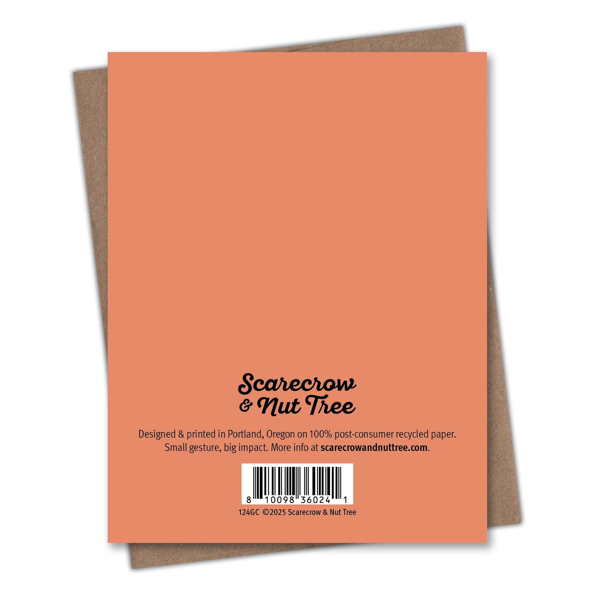 This Birthday card is printed on 100% recycled paper because we love trees as much as we love helping you connect. All Scarecrow & Nut Tree greeting cards are blank inside, which means you can write whatever you want. We’re partial to something personal, playful, or punny. But you do you. Comes with a recycled Kraft envelope so the whole thing is easy on the eyes and the earth.
