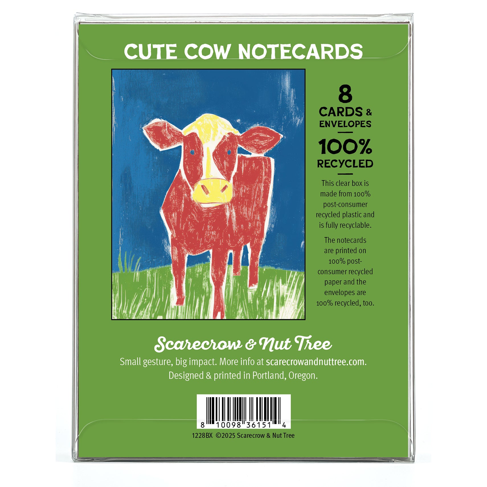 Cute Cow – Recycled Boxed Notecard Set for Gardeners & Animal Lovers