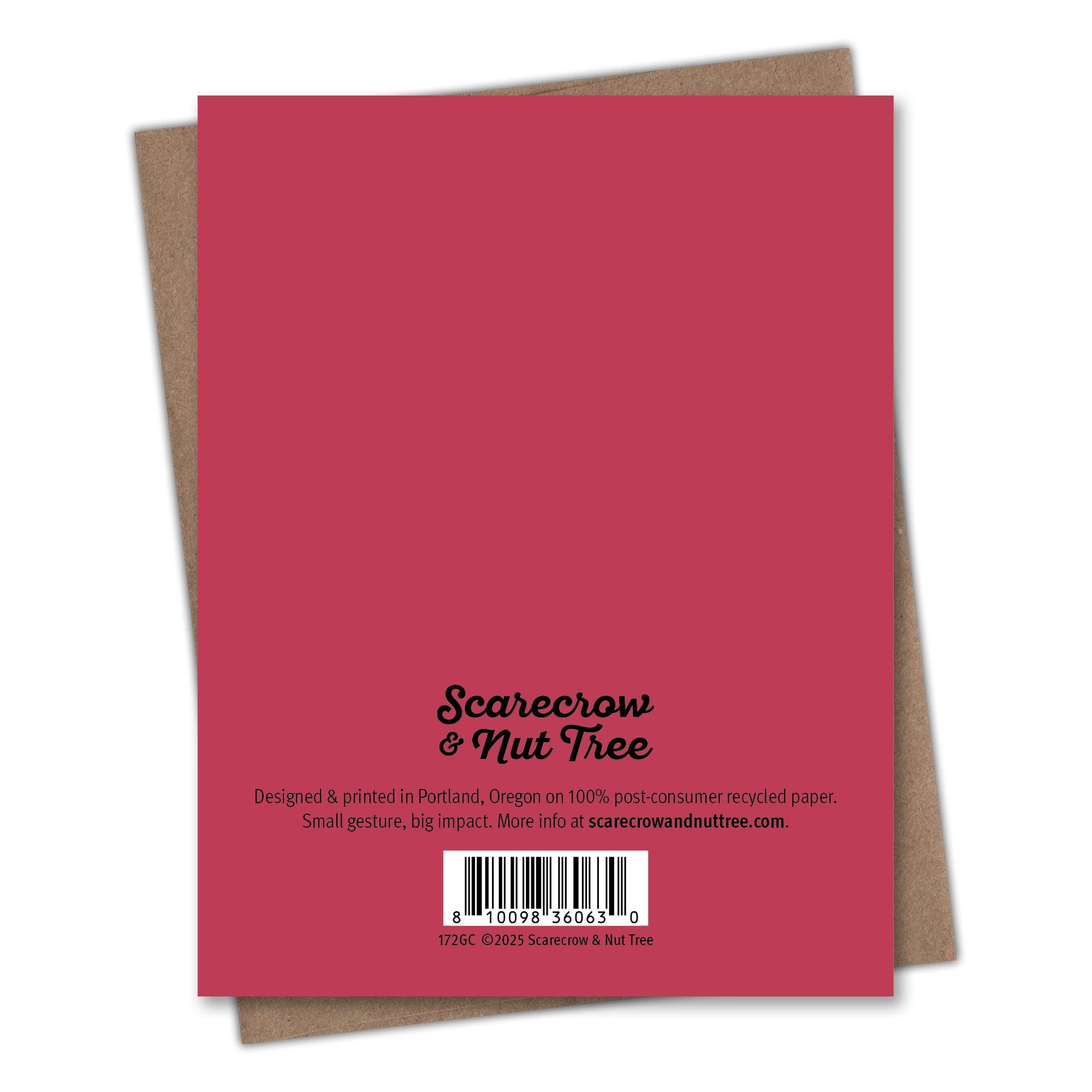 This Blank Notecard card is printed on 100% recycled paper because we love trees as much as we love helping you connect. All Scarecrow & Nut Tree greeting cards are blank inside, which means you can write whatever you want. We’re partial to something personal, playful, or punny. But you do you. Comes with a recycled Kraft envelope so the whole thing is easy on the eyes and the earth.