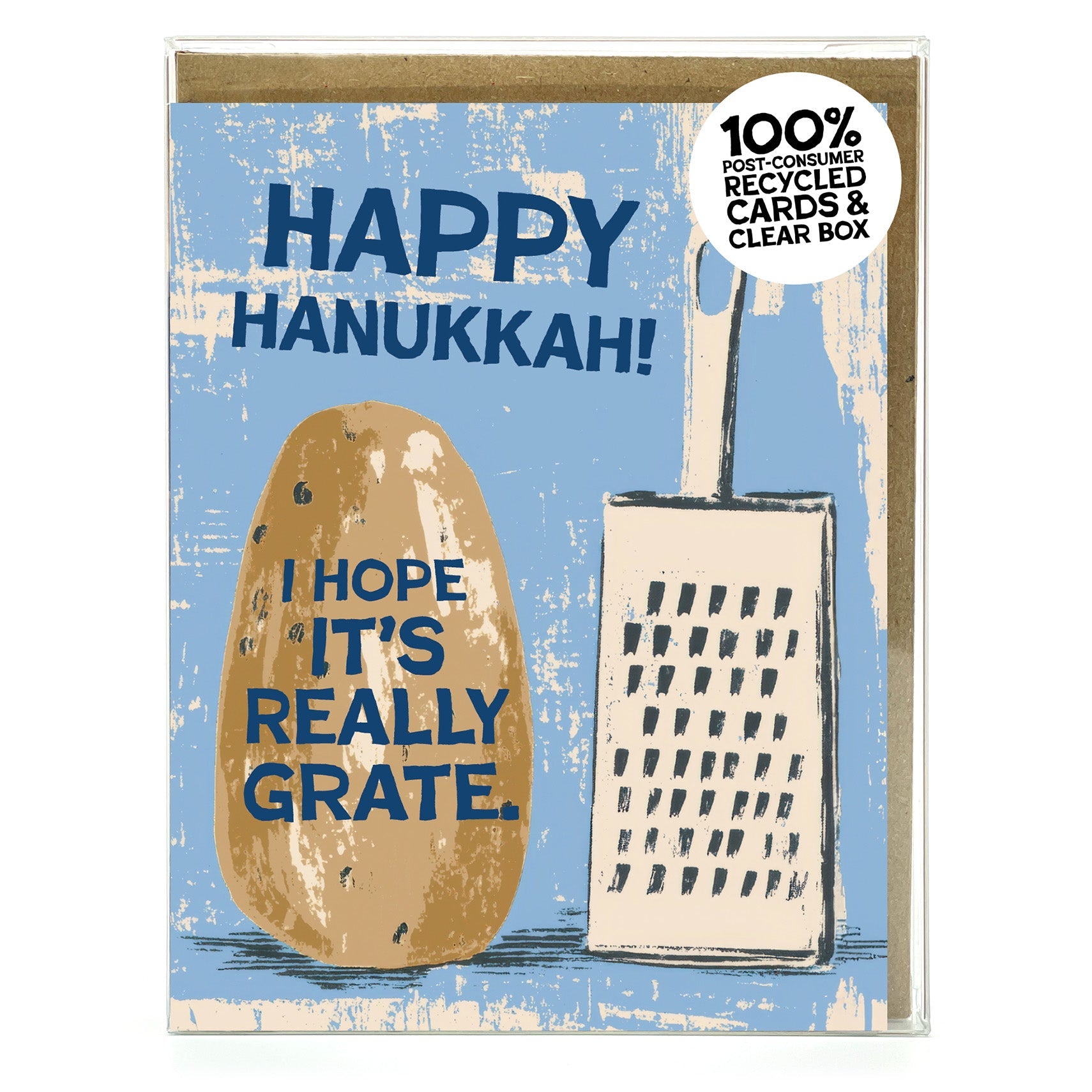 These Hanukkah cards are printed on 100% recycled paper because we love trees as much as we love helping you connect. All Scarecrow & Nut Tree greeting cards are blank inside, which means you can write whatever you want. We're partial to something personal, playful, or punny. But you do you.