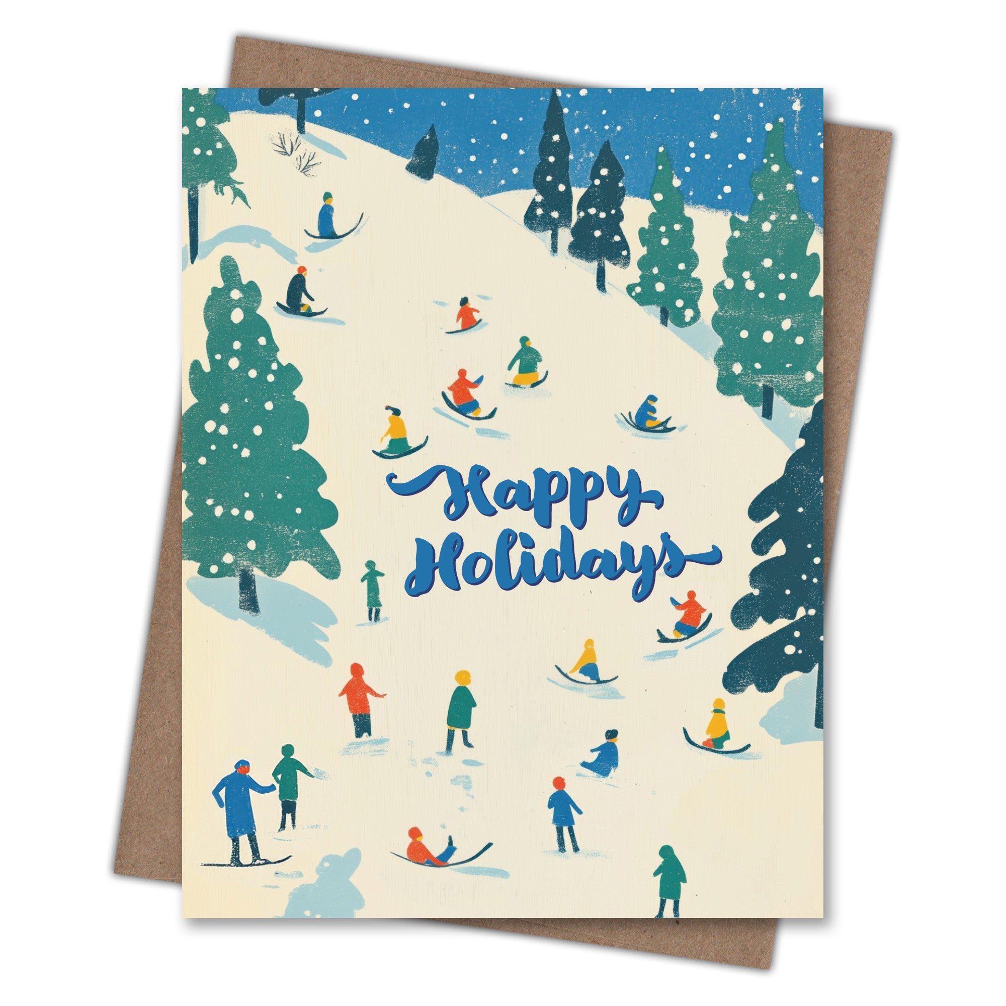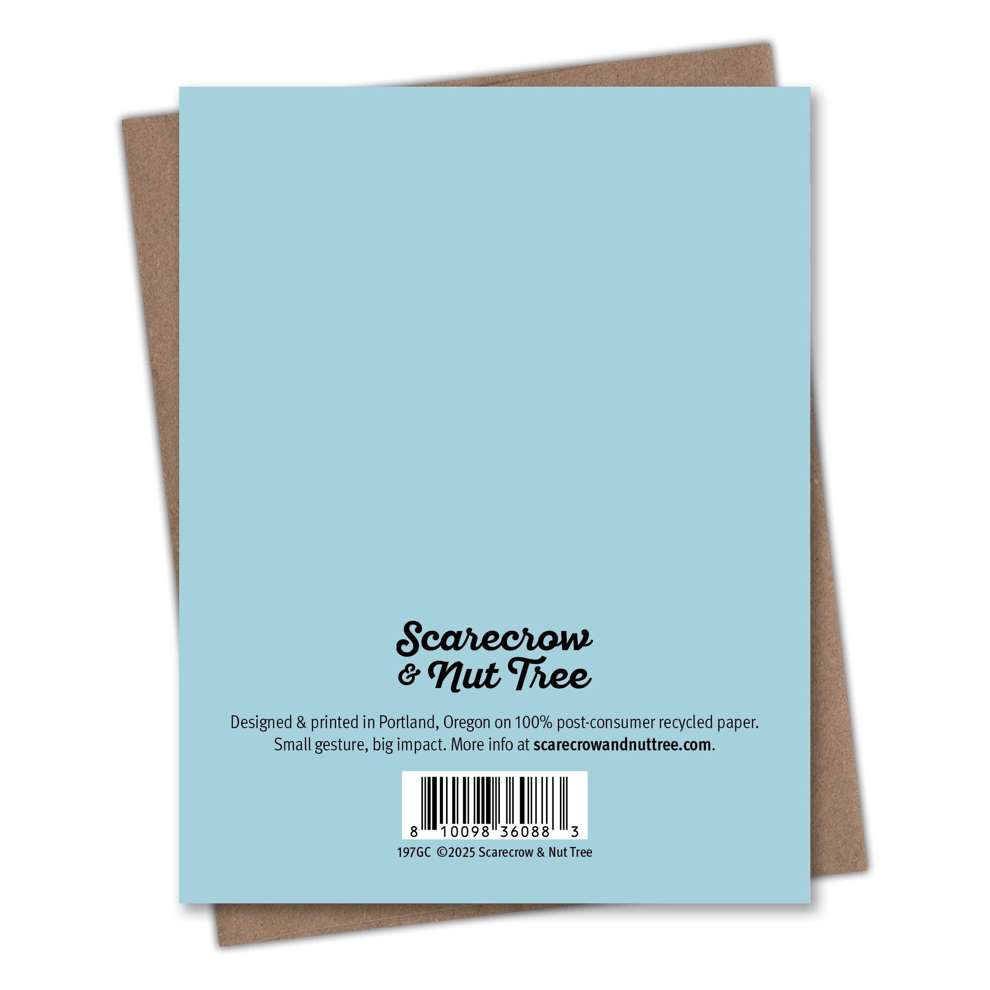 These Happy Holidays cards are printed on 100% recycled paper because we love trees as much as we love helping you connect. All Scarecrow & Nut Tree greeting cards are blank inside, which means you can write whatever you want. We’re partial to something personal, playful, or punny. But you do you.