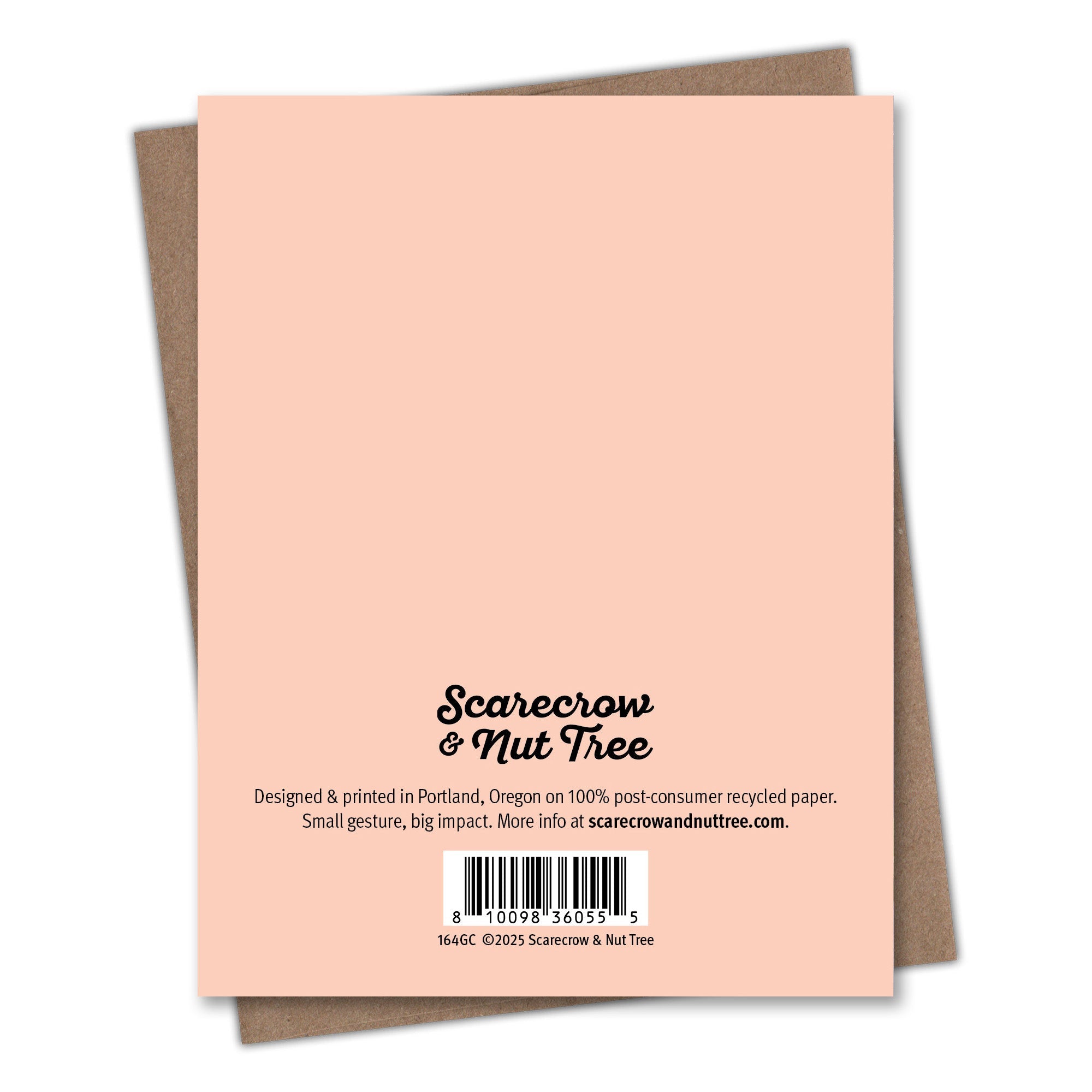 This Get Well card is printed on 100% recycled paper because we love trees as much as we love helping you connect. All Scarecrow & Nut Tree greeting cards are blank inside, which means you can write whatever you want. We’re partial to something personal, playful, or punny. But you do you. Comes with a recycled Kraft envelope so the whole thing is easy on the eyes and the earth.