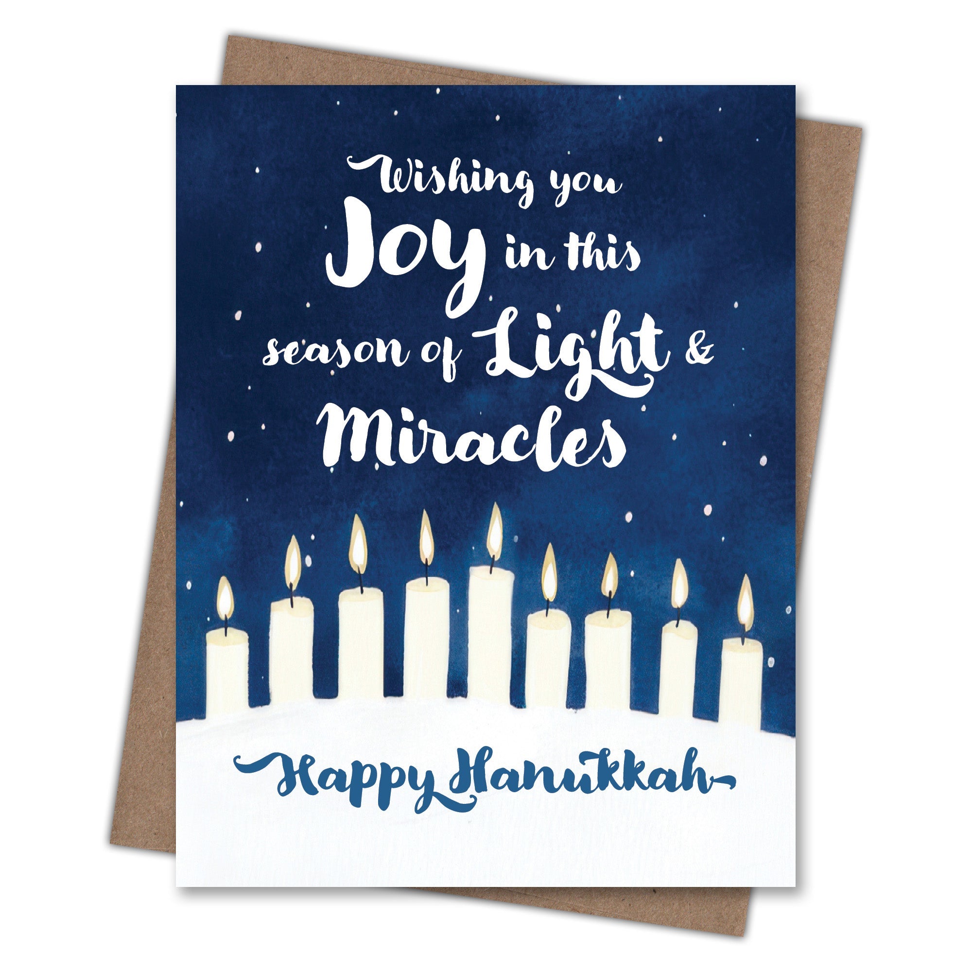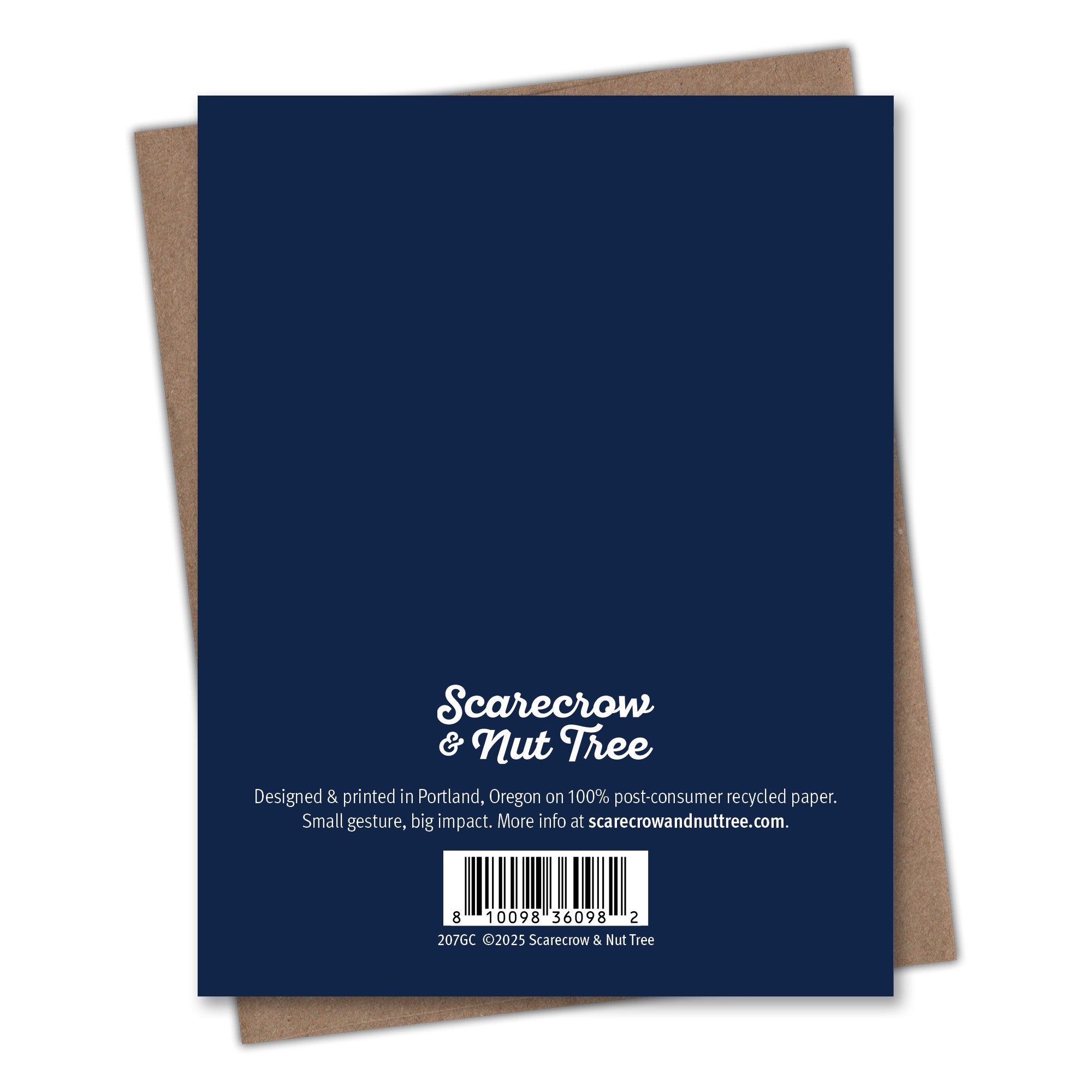 This Happy Hanukkah card is printed on 100% recycled paper because we love trees as much as we love helping you connect. All Scarecrow & Nut Tree greeting cards are blank inside, which means you can write whatever you want. We're partial to something personal, playful, or punny. But you do you. Comes with a recycled Kraft envelope so the whole thing is easy on the eyes and the earth.