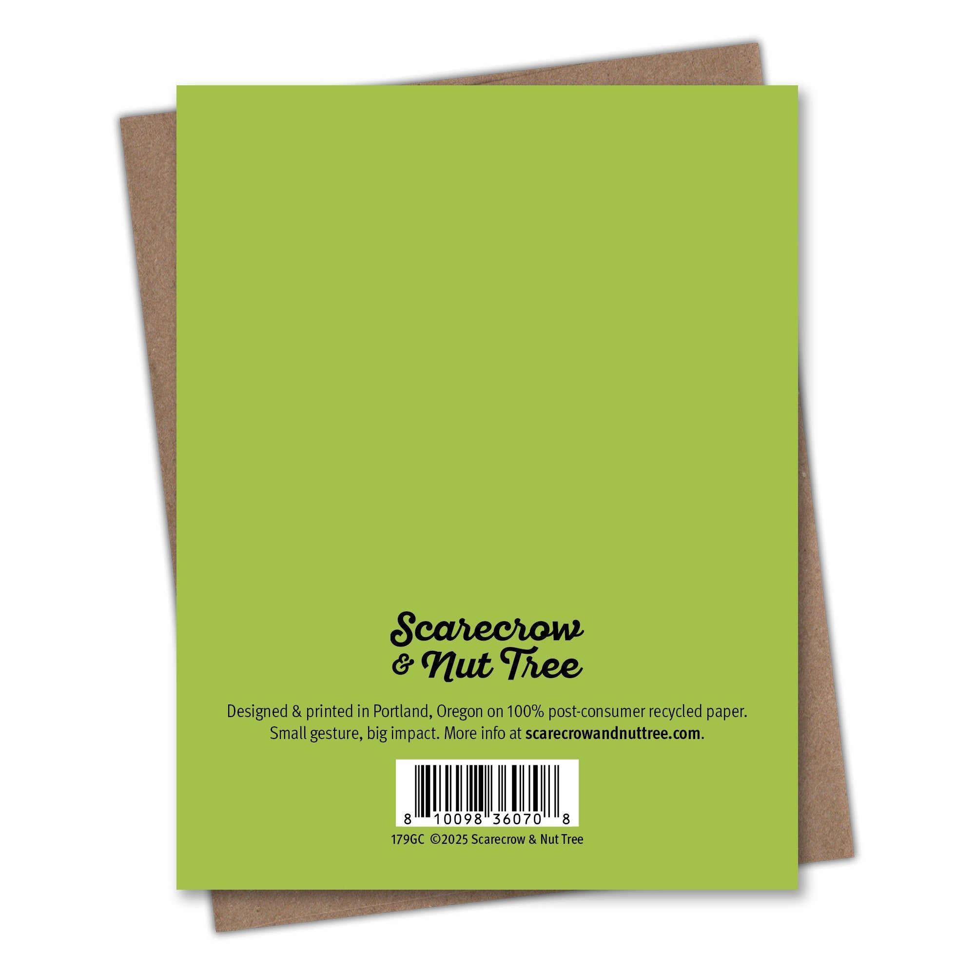 This Love card card is printed on 100% recycled paper because we love trees as much as we love helping you connect. All Scarecrow & Nut Tree greeting cards are blank inside, which means you can write whatever you want. We’re partial to something personal, playful, or punny. But you do you. Comes with a recycled Kraft envelope so the whole thing is easy on the eyes and the earth.