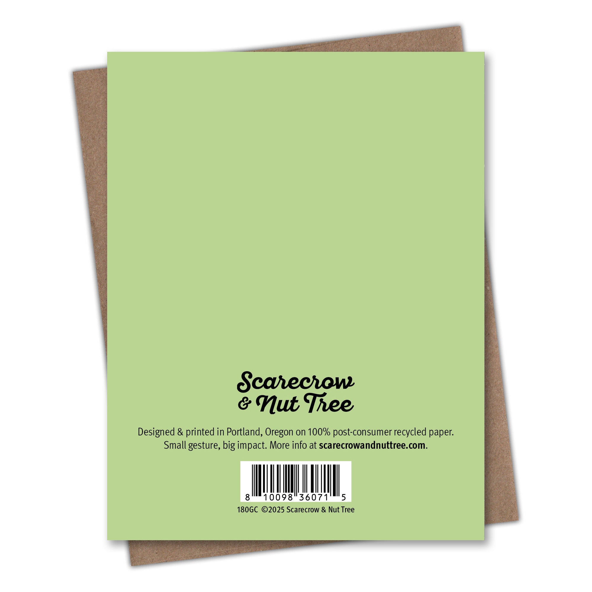 This Love card card is printed on 100% recycled paper because we love trees as much as we love helping you connect. All Scarecrow & Nut Tree greeting cards are blank inside, which means you can write whatever you want. We’re partial to something personal, playful, or punny. But you do you. Comes with a recycled Kraft envelope so the whole thing is easy on the eyes and the earth.