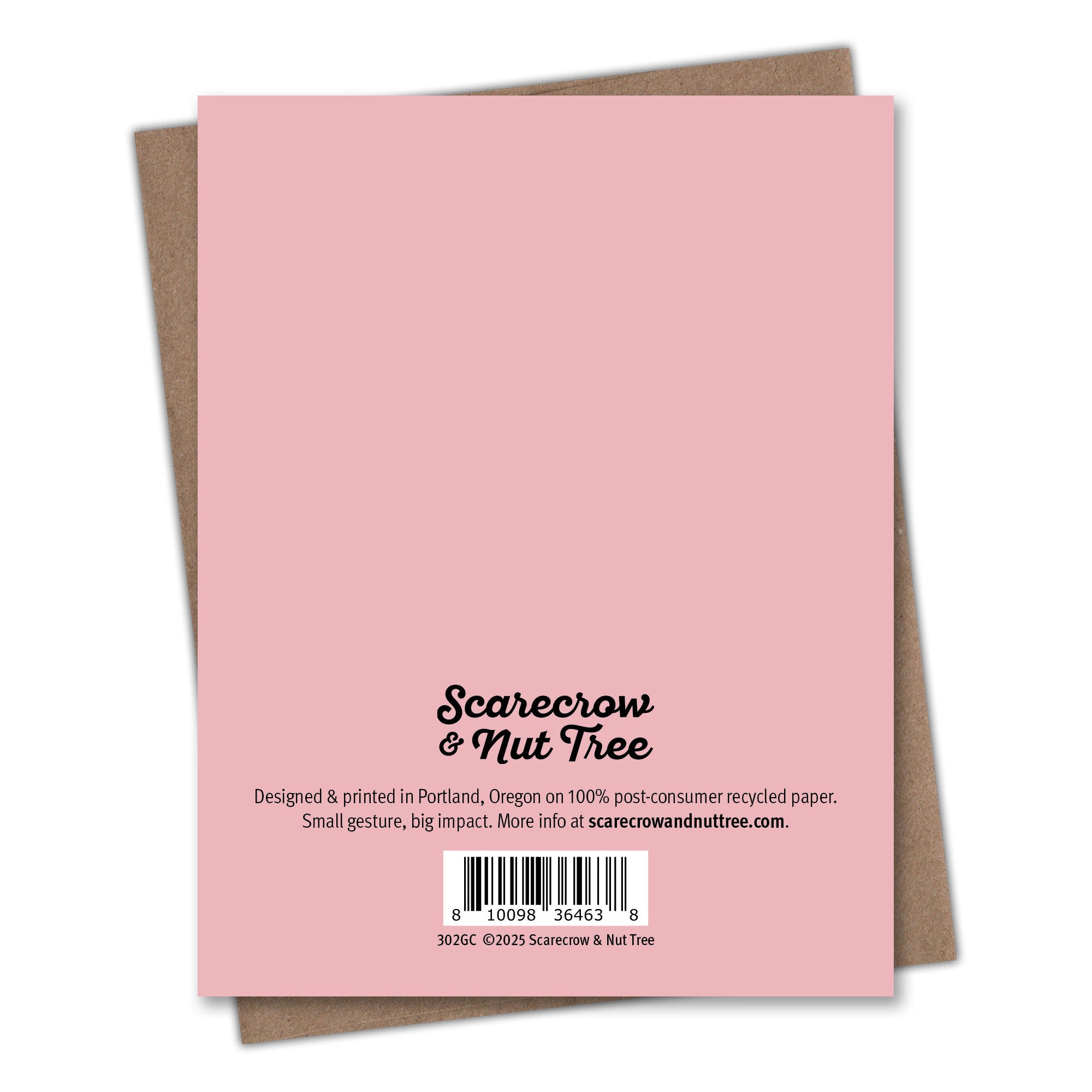 A hot pink cornhole board with a heart-shaped bean bag dares you with the line 'Let's play!' A humorous pick for anyone who appreciates playful innuendo. Printed on 100% recycled paper because we love trees almost as much as we love a good double entendre. Greeting cards in the Hot Date collection are blank inside, which means you can write whatever you want. We're partial to sweet, sexy, or scorchingly scandalous. But you do you - or each other. Comes with a recycled kraft envelope so the whole package looks as good as you're about to make them feel. All Scarecrow & Nut Tree cards are sleeveless, but clear sleeves are available upon request. 4.25 in x 5.25 in.