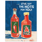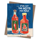 Two hot sauce bottles flirt over who is hotter, making this a spicy pick for foodies or anyone who turns up the heat in your life. Printed on 100% recycled paper because we love trees as much as we love helping you connect. Blank inside, so you can write whatever you want. Comes with a recycled kraft envelope so the whole thing is easy on the eyes and the earth. All Scarecrow & Nut Tree cards are sleeveless, but clear sleeves are available upon request. 4.25 in x 5.25 in.