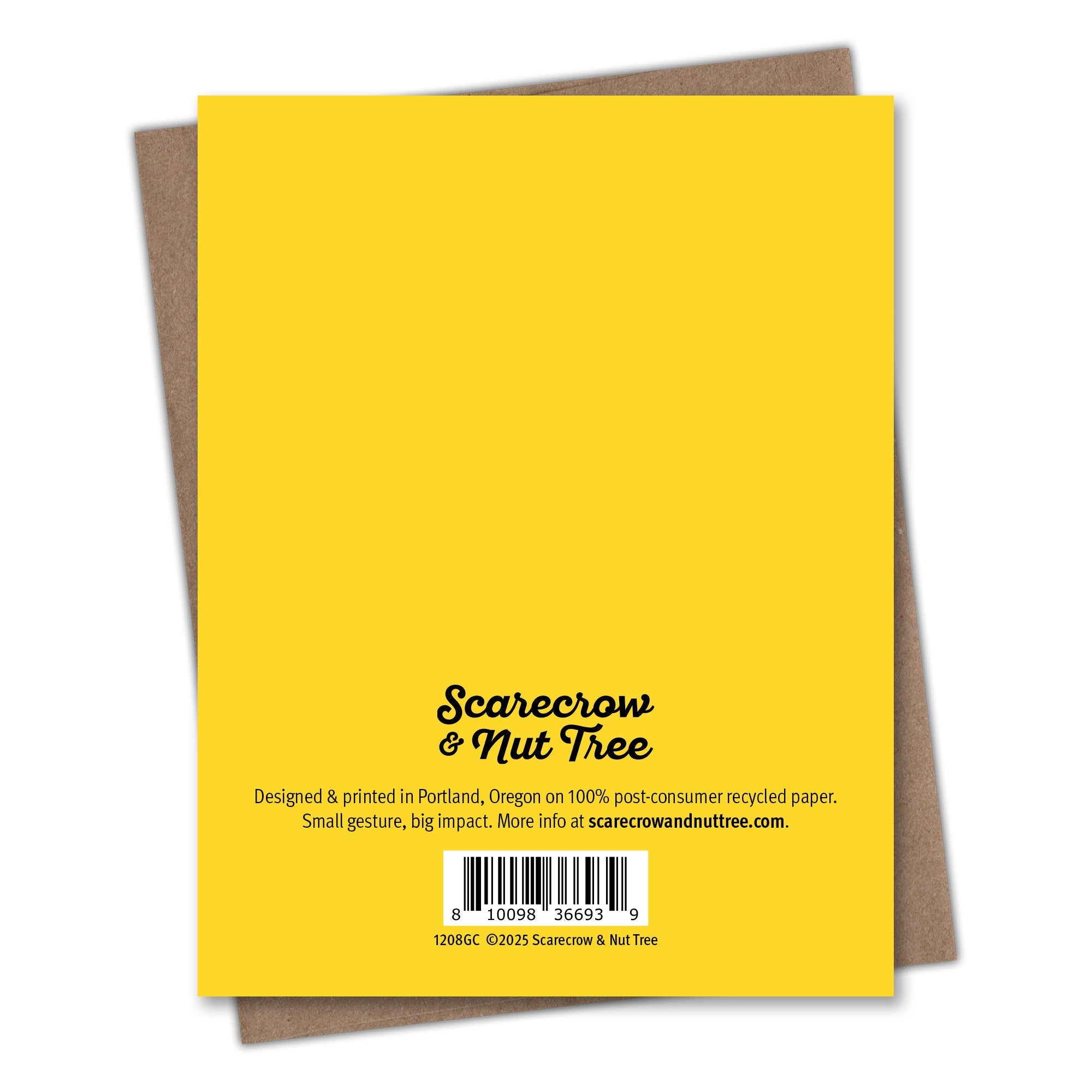 A bright yellow and black tape measure highlights Dad's unwavering support in this clever DIY inspired Father's Day card perfect for handy dads. Printed on 100 percent recycled paper because we love trees as much as we love helping you connect. Blank inside so you can write whatever you want. Comes with a recycled kraft envelope so the whole thing is easy on the eyes and the earth. All Scarecrow and Nut Tree cards are sleeveless but clear sleeves are available upon request. 4.25 in x 5.25 in.
