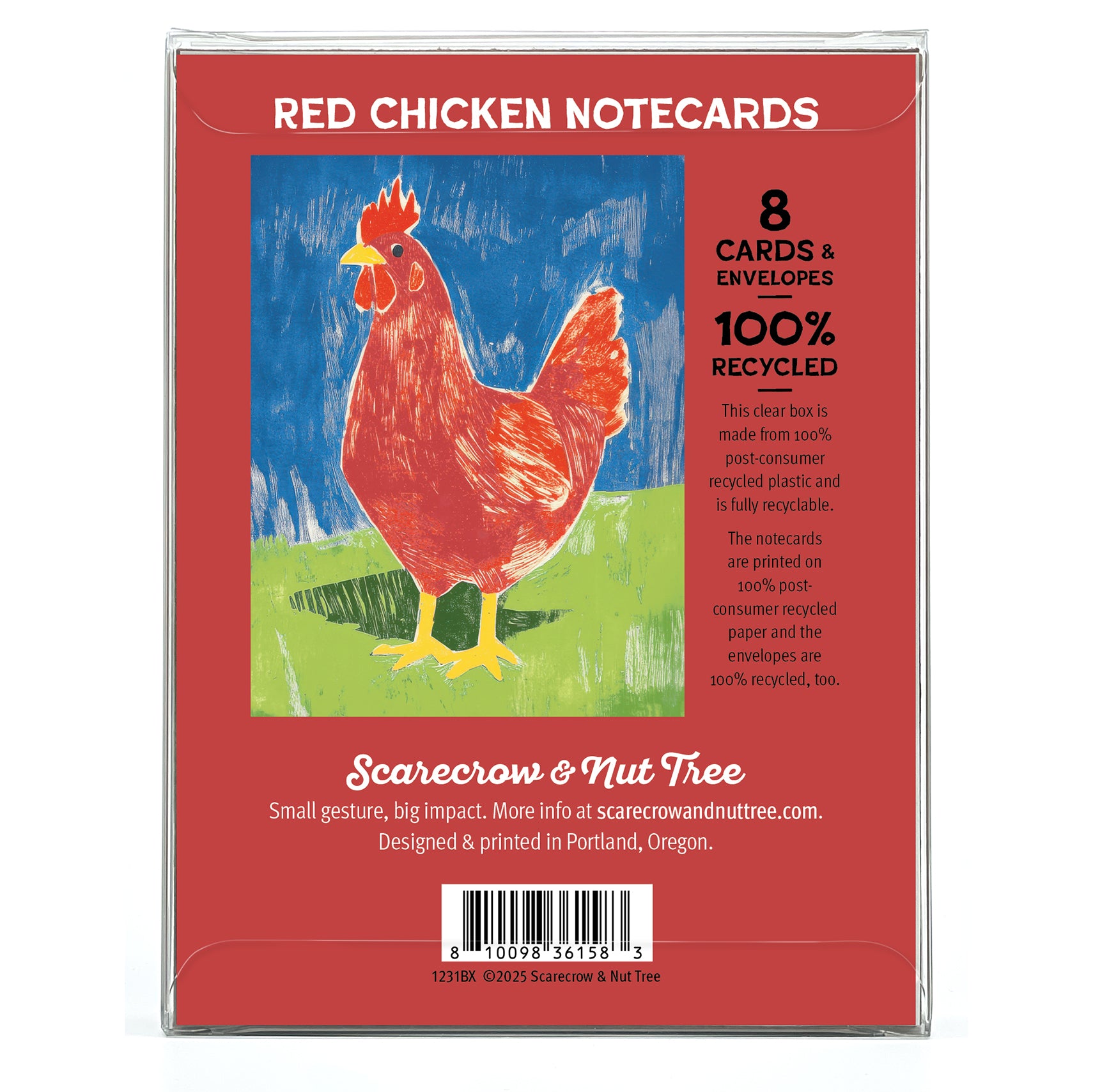 Red Chicken – Recycled Boxed Notecard Set for Gardeners & Animal Lovers