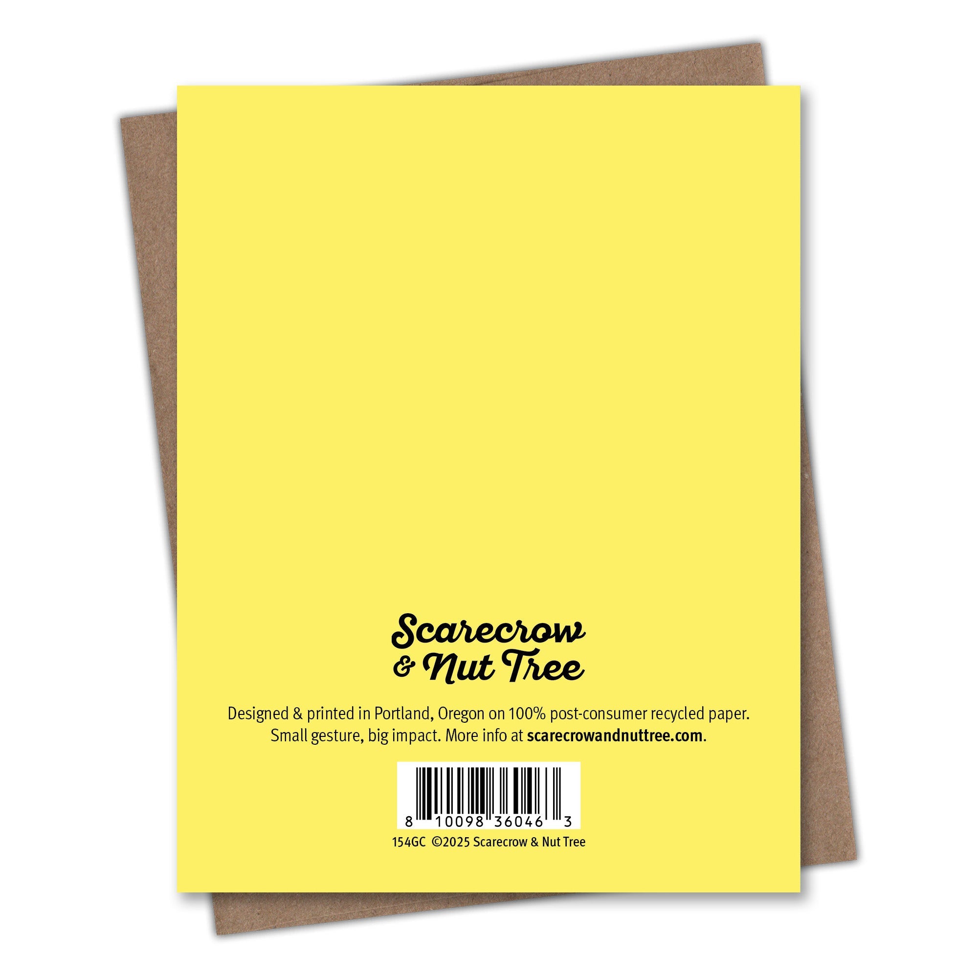 This Thank You card is printed on 100% recycled paper because we love trees as much as we love helping you connect. All Scarecrow & Nut Tree greeting cards are blank inside, which means you can write whatever you want. We’re partial to something personal, playful, or punny. But you do you. Comes with a recycled Kraft envelope so the whole thing is easy on the eyes and the earth.