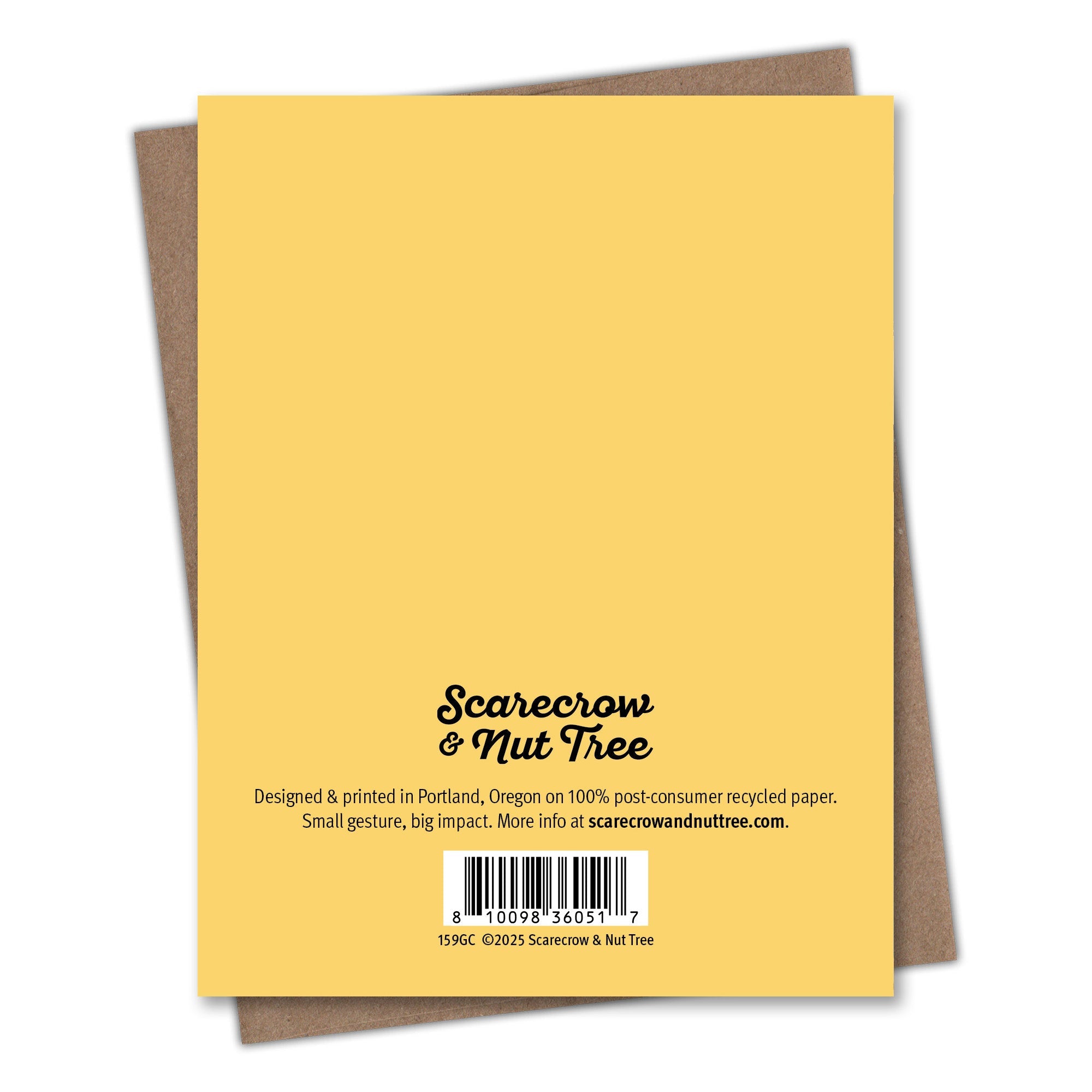 This Thank You card is printed on 100% recycled paper because we love trees as much as we love helping you connect. All Scarecrow & Nut Tree greeting cards are blank inside, which means you can write whatever you want. We’re partial to something personal, playful, or punny. But you do you. Comes with a recycled Kraft envelope so the whole thing is easy on the eyes and the earth.