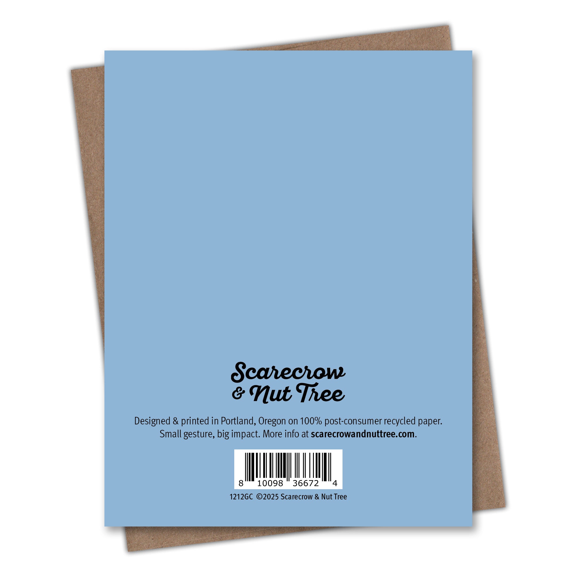 Two giraffes with long intertwining necks create a sweet wildlife inspired celebration of newlywed love in this charming wedding card. Printed on 100 percent recycled paper because we love trees as much as we love helping you connect. Blank inside so you can write whatever you want. Comes with a recycled kraft envelope so the whole thing is easy on the eyes and the earth. All Scarecrow and Nut Tree cards are sleeveless but clear sleeves are available upon request. 4.25 in x 5.25 in.